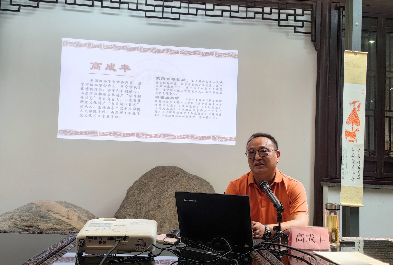 5月30日,“写好中国字”吴文化体验课(二)——《汉画像石鉴赏与书法题跋》在吴门书道馆紫藤苑开讲。此次讲座由中国汉画学会常务理事、济宁市汉画学会会长、济宁市汉文化博物馆长、济宁印社创始人、山东省非物质文化遗产“拓片制作技艺”项目负责人、山东省非物质文化遗产“拓片制作技艺”传承人,兼任山东工艺美术学院人文学院导师、山东理工职业学院文化艺术专业导师高成丰主讲。